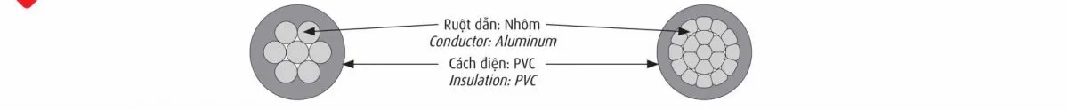 - CC: Ruột dẫn tròn xoắn ép chặt - Circular Compacted Stranded Conductor.