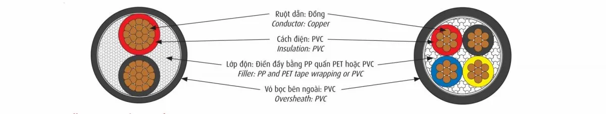 CVV - 0,6/1 KV: Cáp điện lực, ruột đồng, cách điện pvc, vỏ pvc