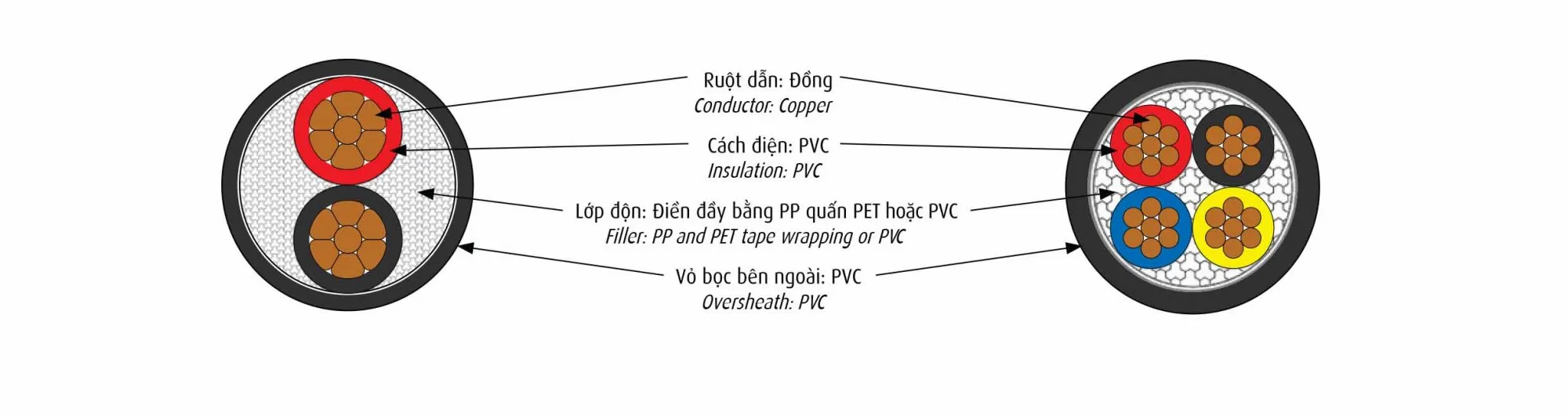 CVV - 300/500 V: Cáp điện lực, ruột đồng, cách điện pvc, vỏ pvc