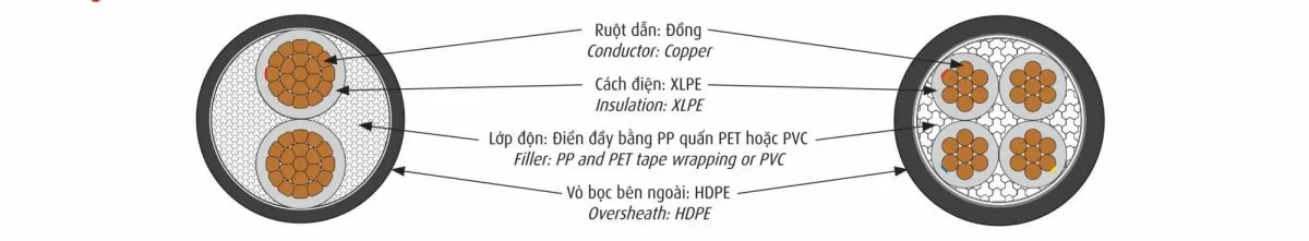 CXE - 0,6/1 KV: Cáp điện lực, ruột đồng, cách điện xlpe, vỏ hdpe