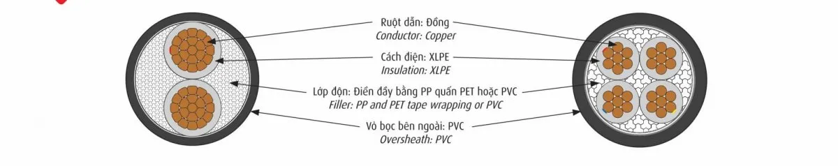 CXV - 0,6/1 KV: Cáp điện lực, ruột đồng, cách điện xlpe, vỏ pvc
