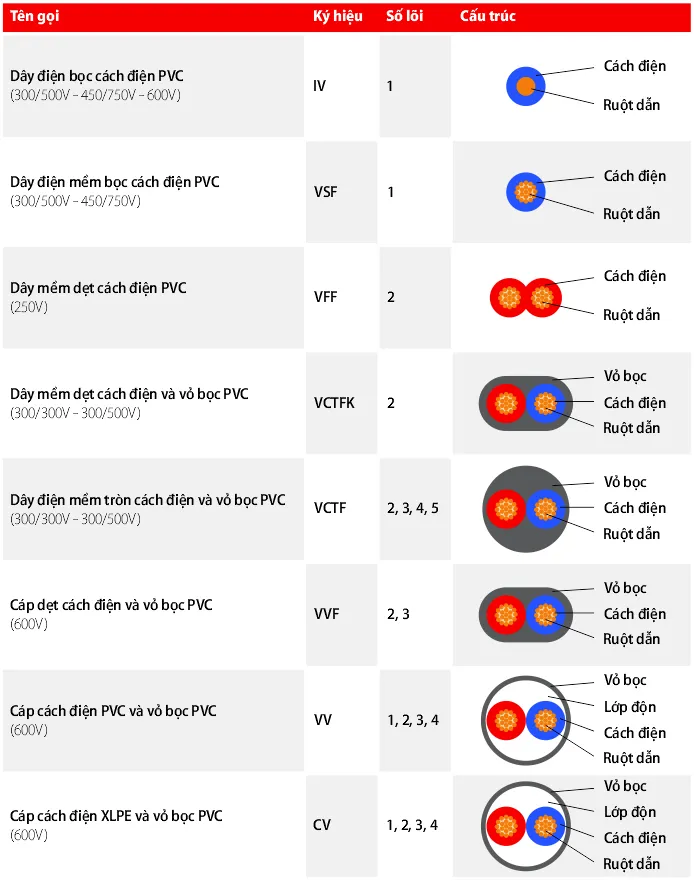 - Mục đích sử dụng: Dùng làm dây dẫn điện cho các thiết bị thông dụng trong các hộ gia đình.